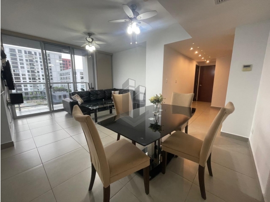 Apartamento Amoblado con Hermosa Vista a la naturaleza el PH Mosaic Torre A piso 4-Panamá Pacífico cuenta con 115m2 distribuidos en una amplia sala comedor que se une con la cocina abierta y el balcón con vista a las montañas y vía principal, cuenta además con una recámara principal con muebles diseñados a la medida además encontrarás baño interno y walk in closet. El apartamento también cuenta con una cómoda recámara secundaria con su baño completo y zona de lavandería.
